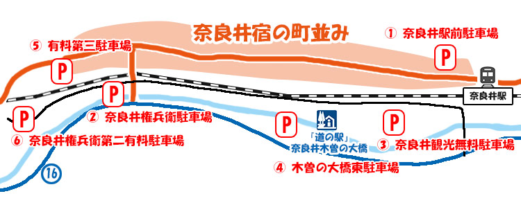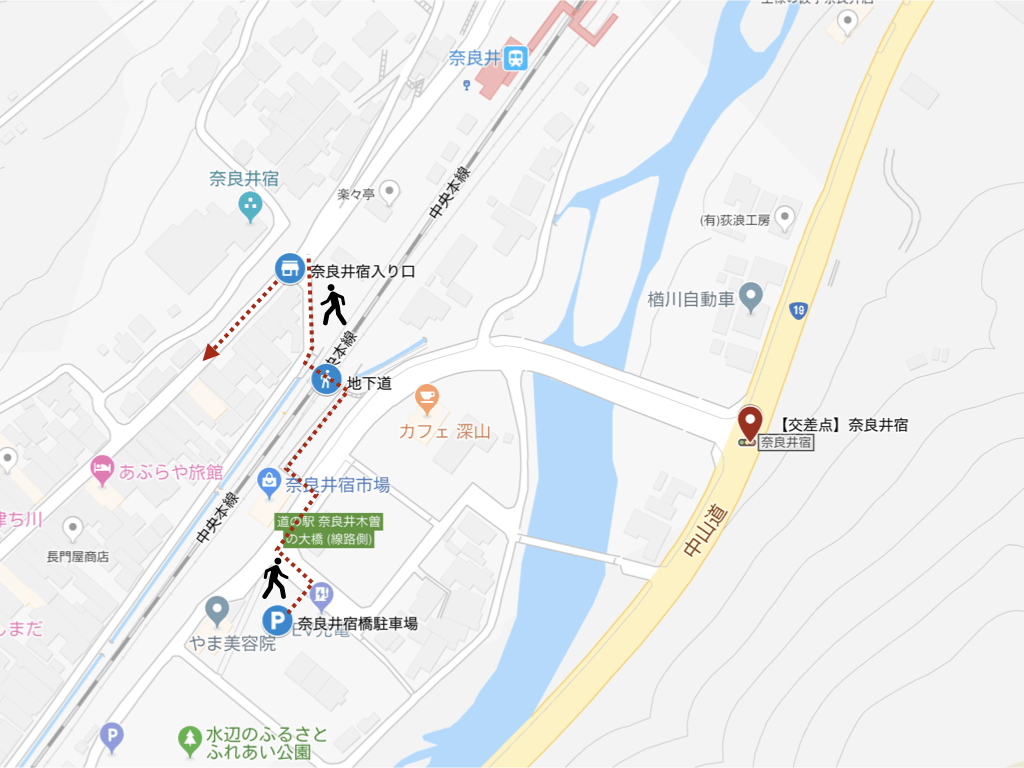 無料 奈良井橋駐車場へのアクセス。