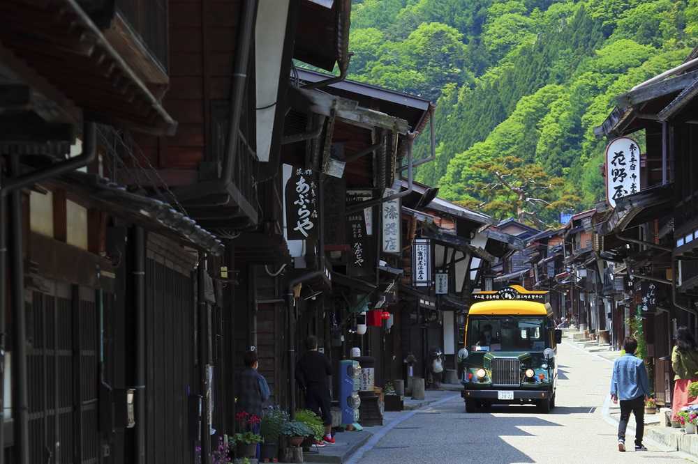 タイムスリップ!ナイストリップ! 見た目も可愛い懐かしのレトロ調バスが、人気の観光地「宿場町・奈良井宿」と「漆工町・木曾平沢」を結びます。塩尻市 観光協会。