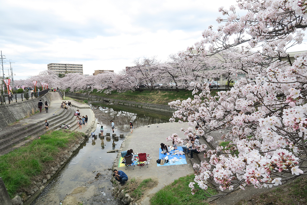川沿い約2.5kmにわたる桜並木。奈良県大和高田市が誇る県内。
