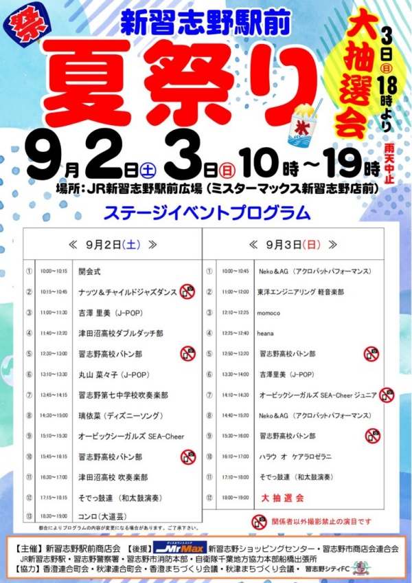 習志野市 今週末9月7日 土 8日 日 は新習志野駅前に集合!内容盛りだくさんの「新習志野駅前夏祭り」開催です!号外NET 八千代市・習志野市。