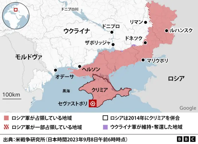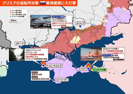 ウクライナ、クリミア半島をミサイル攻撃 ロシア軍艦2隻に被害 - BBCニュース。