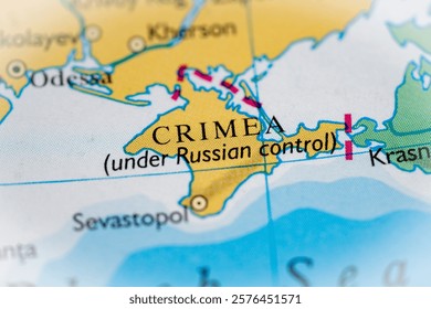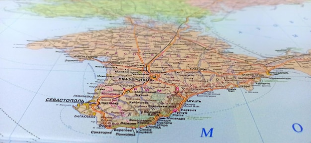 ウクライナの地理地図におけるクリミア半島の地図Premium写真。