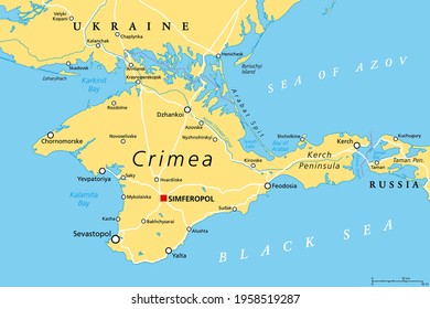 クリミアの政治地図。 黒海北岸の東ヨーロッパの半島で、争うべき地位を持つ。 ロシアに支配され、統治され、ウクライナの一部として国際的に認められる。ベクター画像」のベクター画像素材 ロイヤリティフリー1958519287Shutterstock。