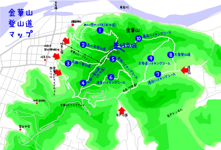 金華山 岐阜市 紅葉の見ごろに登る馬の背コース登山ルートとコースタイム - カレーの大原屋。