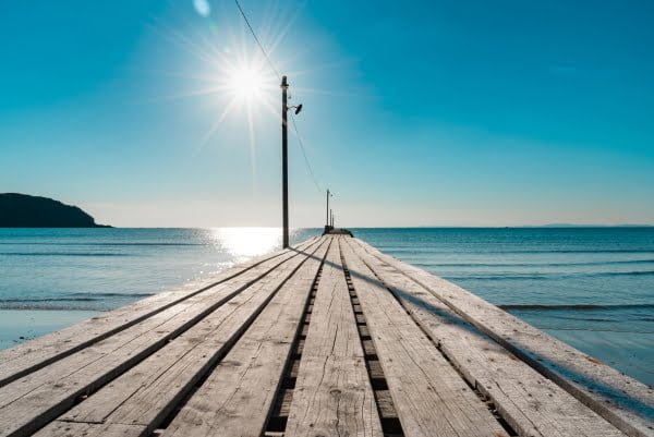 夕焼けスポットで有名な原岡海岸で、夕暮れ時の桟橋を撮影してみました – ニッポナントカ。