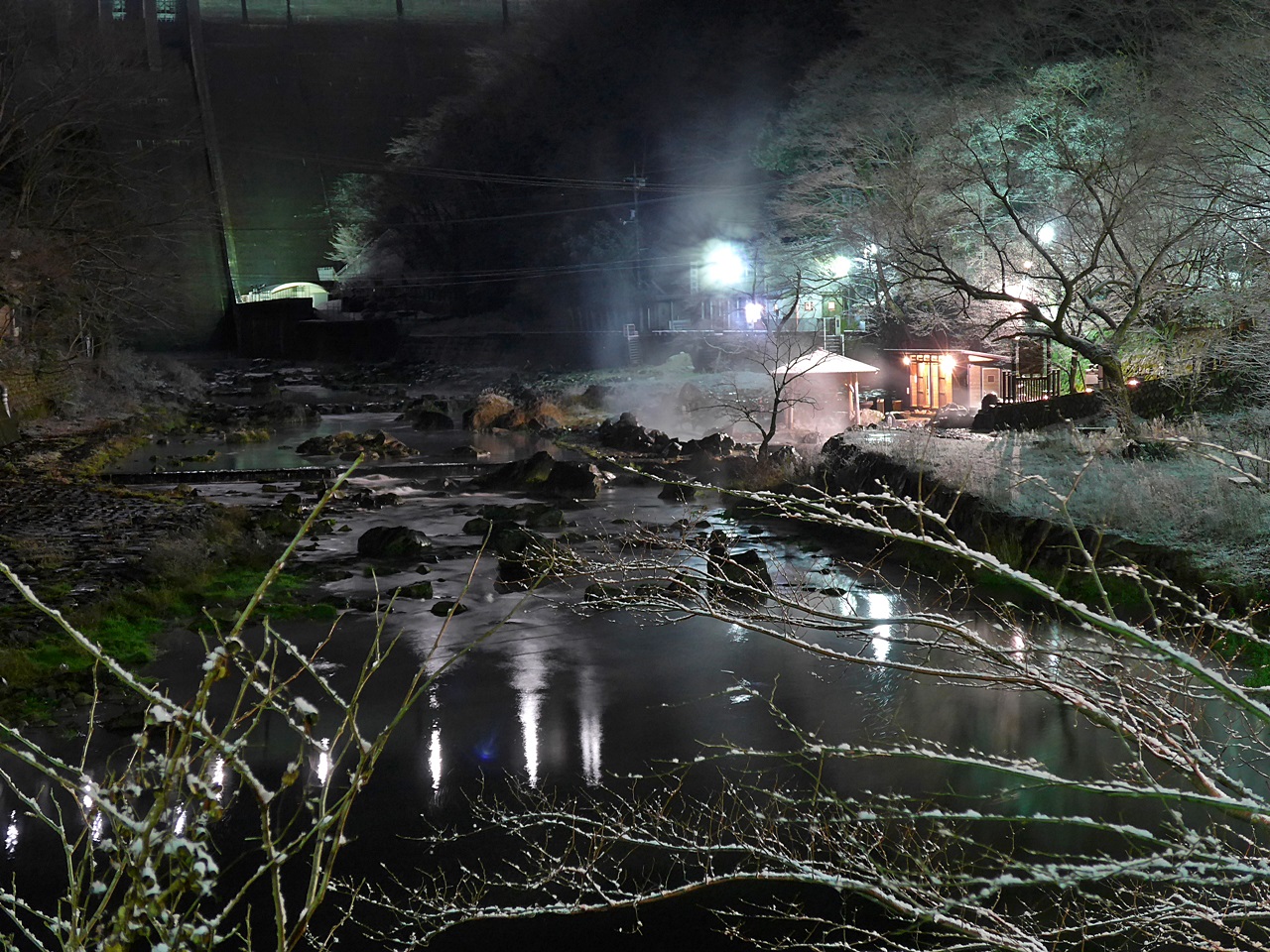 湯原温泉「砂湯」 岡山県真庭市 ダムの真下の川温泉!。