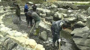 湯原温泉で迎春準備 名物の露天風呂「砂湯」の大掃除 年末年始は旅館も予約でいっぱい 岡山・真庭市TBS。