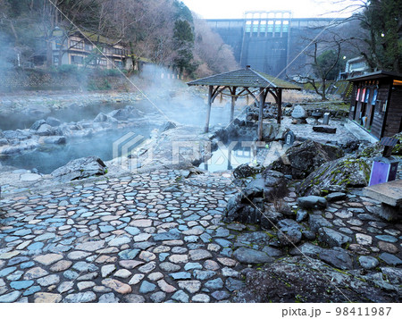 岡山県真庭市、湯原温泉のダムを眺める砂湯の写真素材73583294- PIXTA。