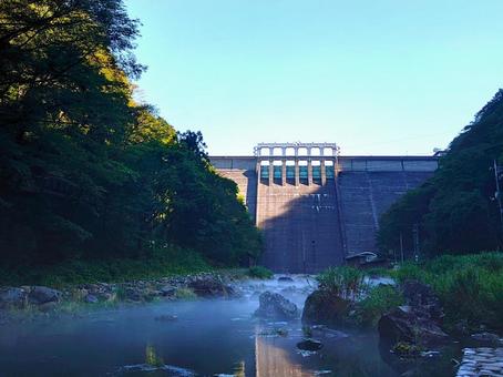 真庭市 湯原温泉街・名勝砂湯露天風呂と湯原ダムの写真素材FYI07791720ストックフォトの QleanMarket キュリンマーケット。