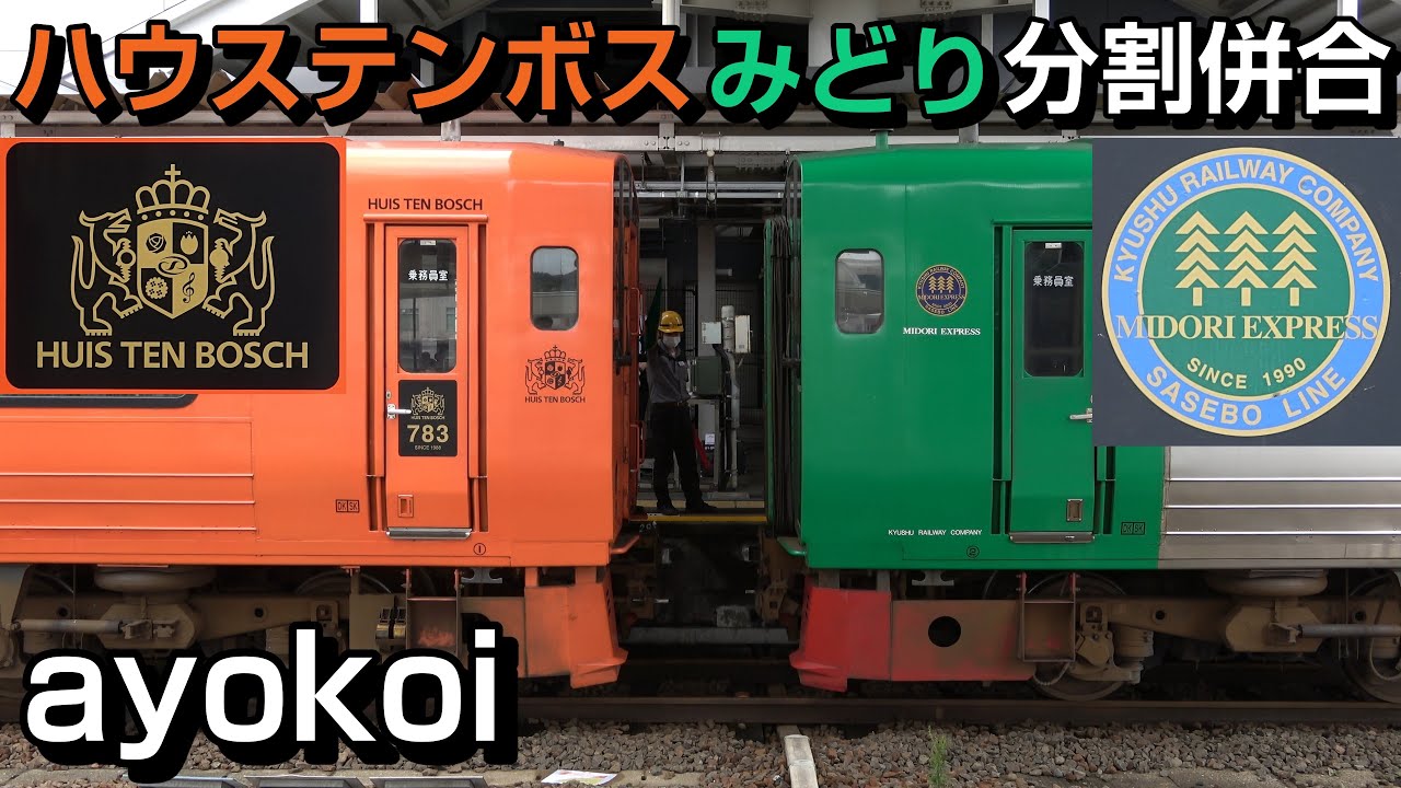 特急ハウステンボス&みどり 早岐駅 連結・切り離し作業。