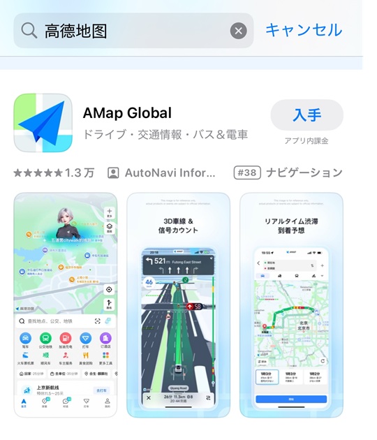 中国旅行に役立つアプリ 高徳地図 編Wake。