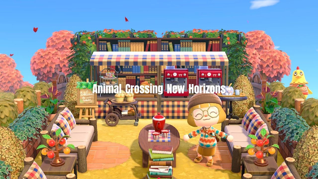 あつ森*マイデザなし 青空ブックカフェと省スペースレイアウトACNH Animal Crossing New。