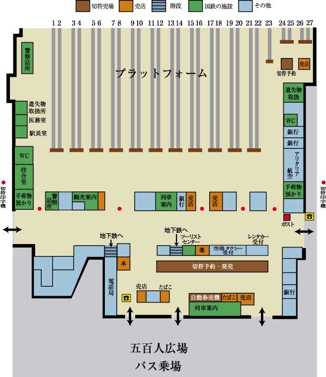 構内図 テルミニ駅構内図、地下一階│世界旅行雑記帳。