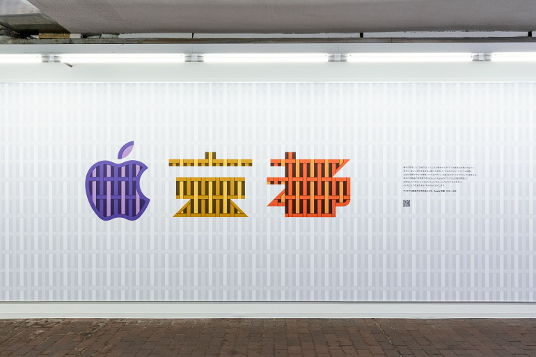 姿を見せたApple 京都、現地レポート QRコード、格子グラフィック。