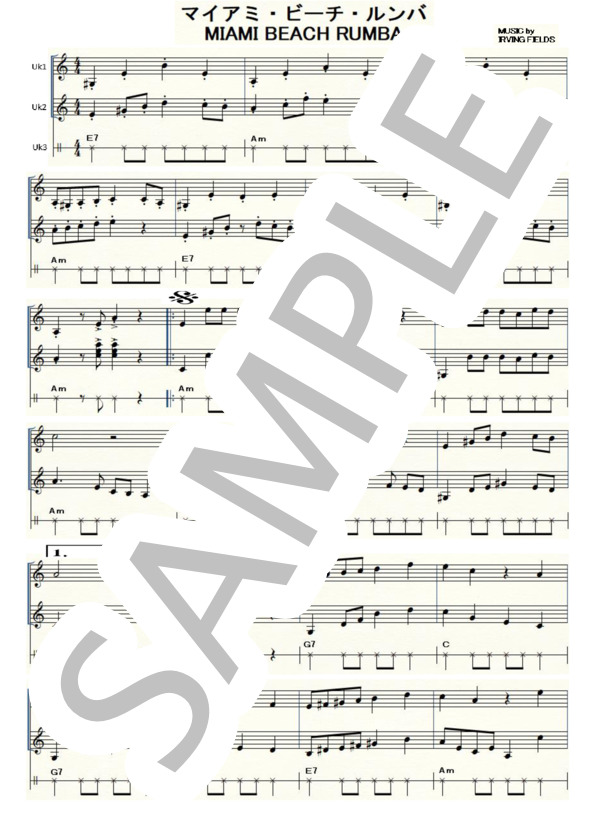 楽譜 マイアミ・ビーチ・ルンバ ウクレレ三重奏中級。