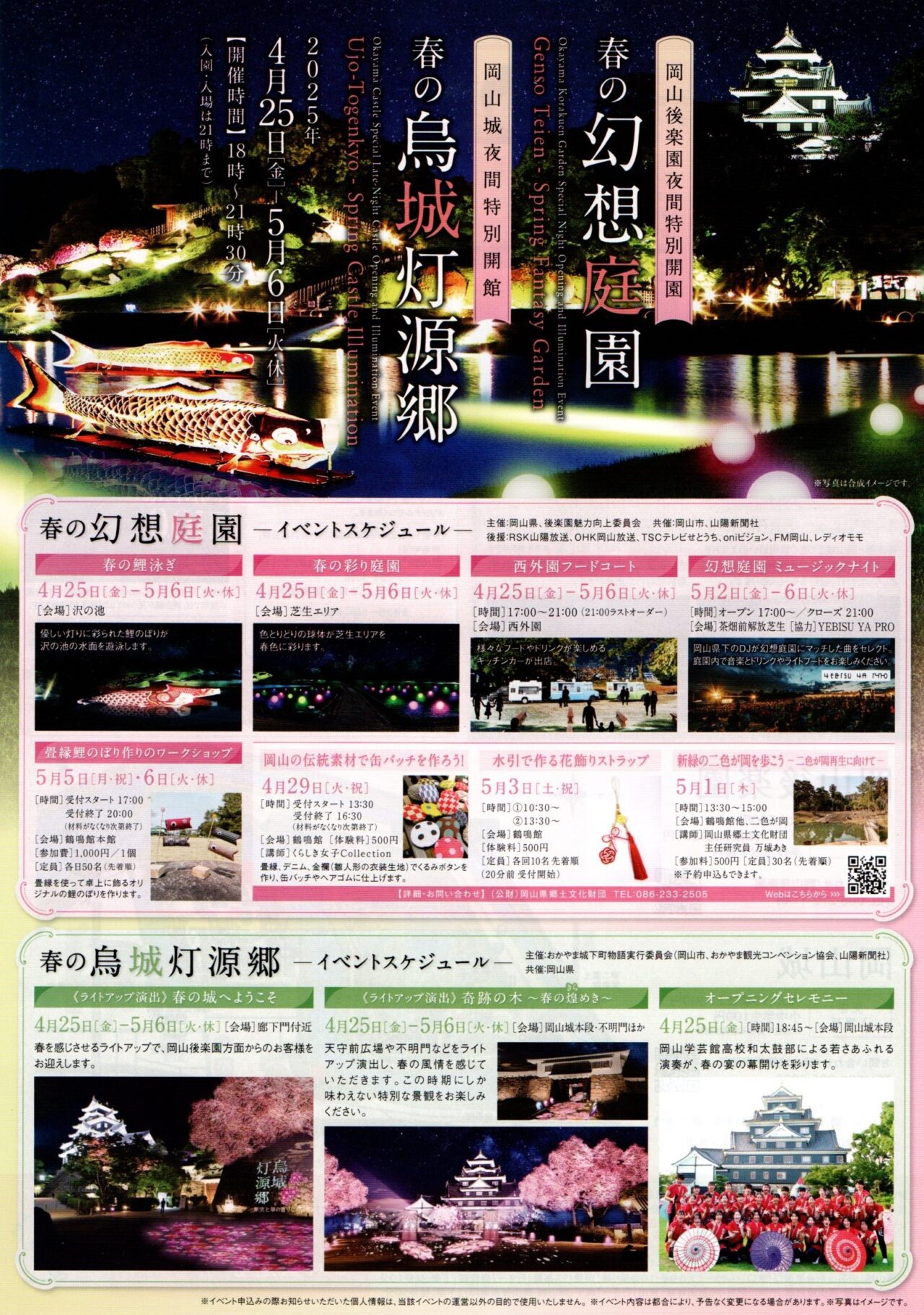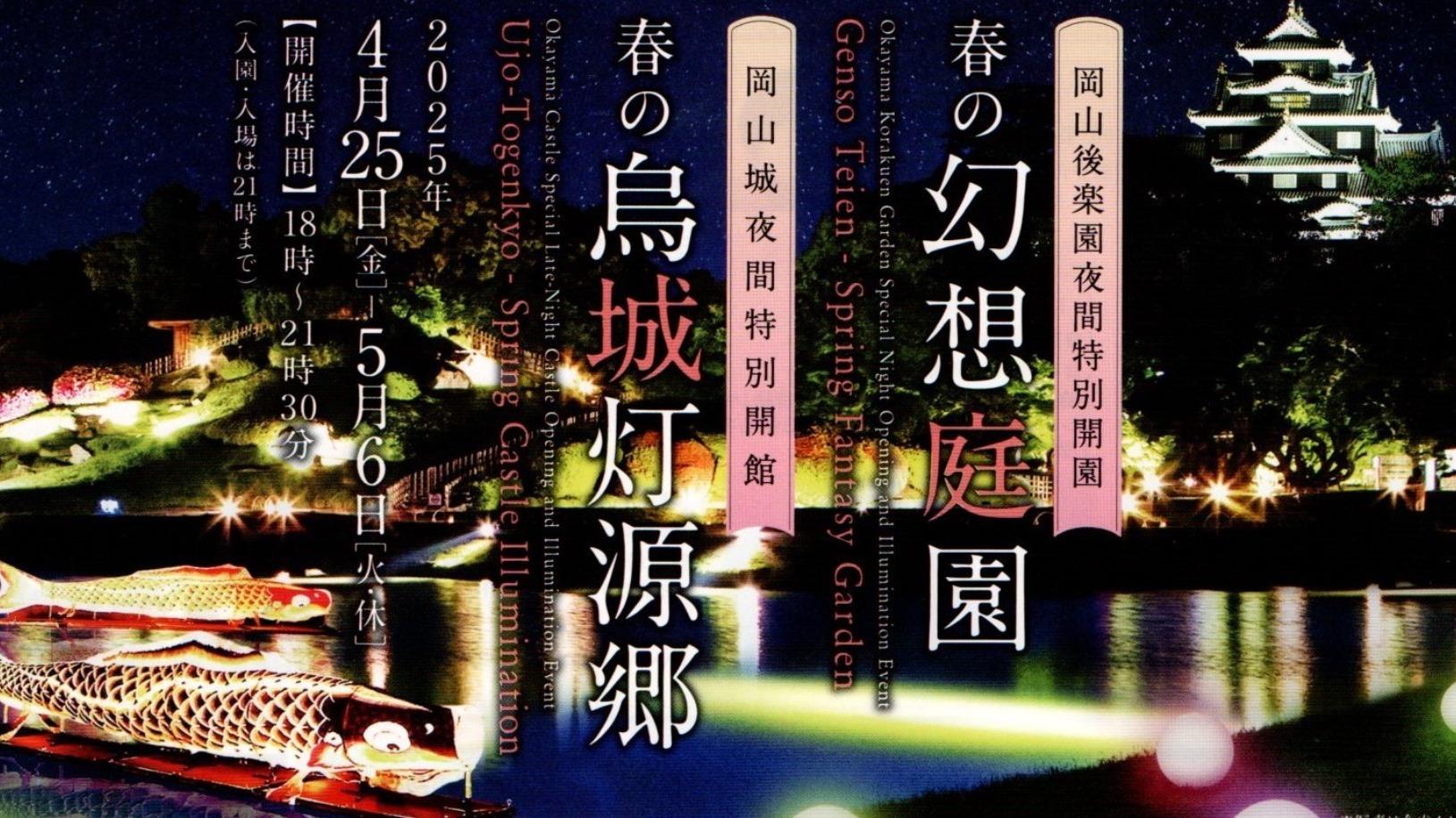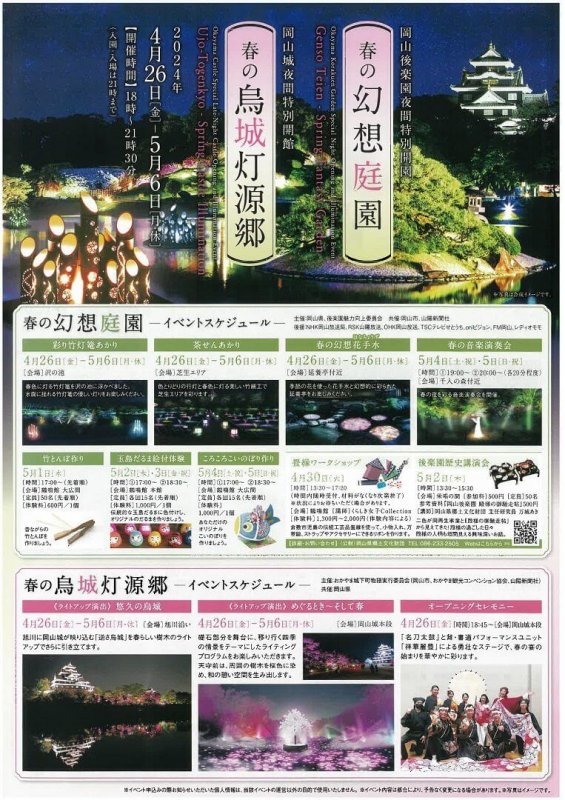 4 26~5 6 岡山後楽園の夜間特別開園「春の幻想庭園」開催。春色のライトアップに、ワークショップイベントも。