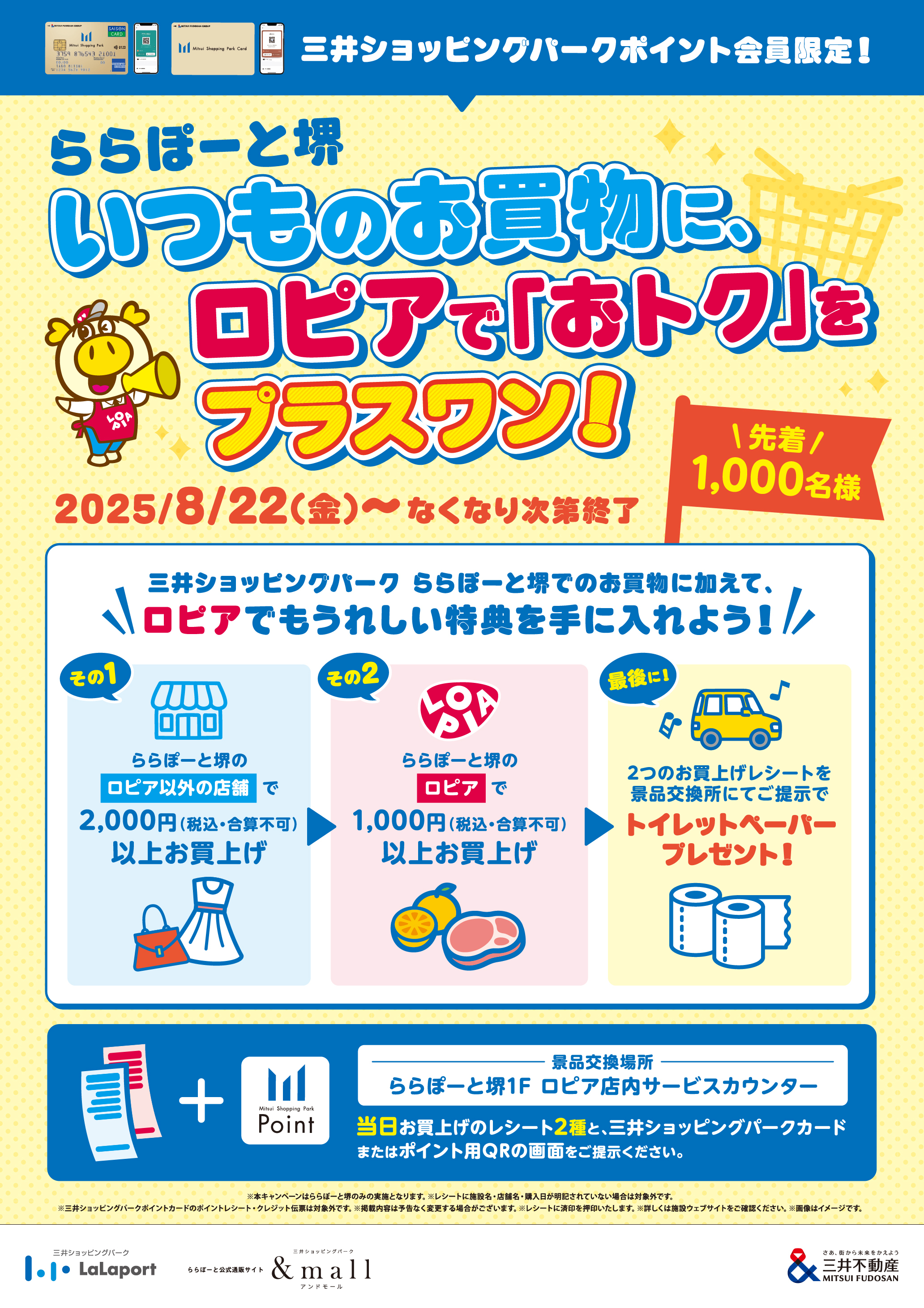 先着上限に達したため終了しました ららぽーと堺 いつものお買物にロピアで『おトク』をプラスワン!ららぽーと堺。