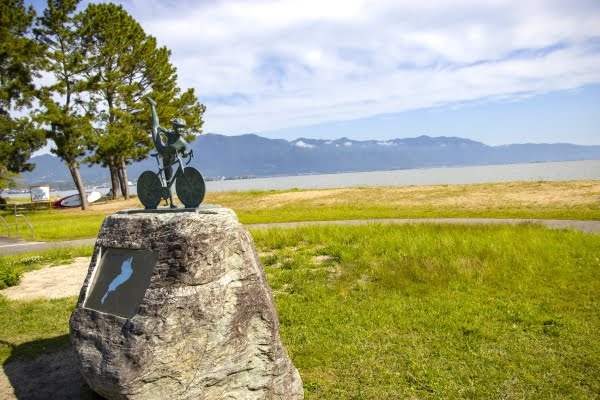 サイクリスト聖地碑が完成 第二なぎさ公園を“ビワイチ”起点に –。