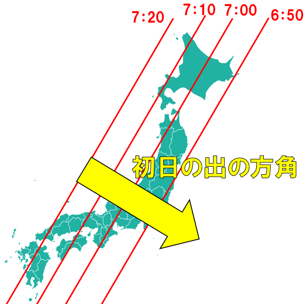 主要都市からの方位の地図 東京 大阪 愛知 福岡。