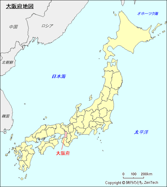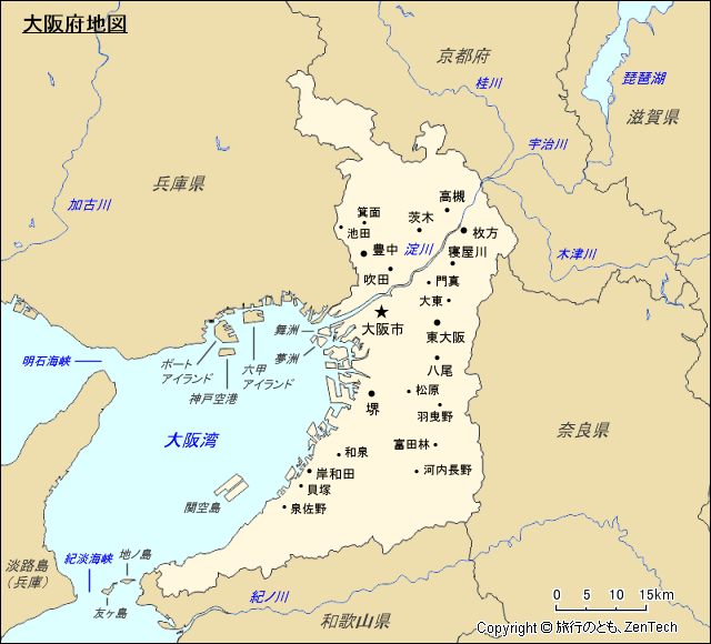 大阪府地図 - 旅行のとも、ZenTech。