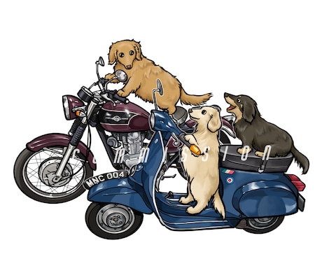 商用可◎乗り物だけも◎乗物×動物イラストを書きます 車・バイク・楽器・マシンと愛猫・愛犬・愛鳥・ペットを記念にココナラ。