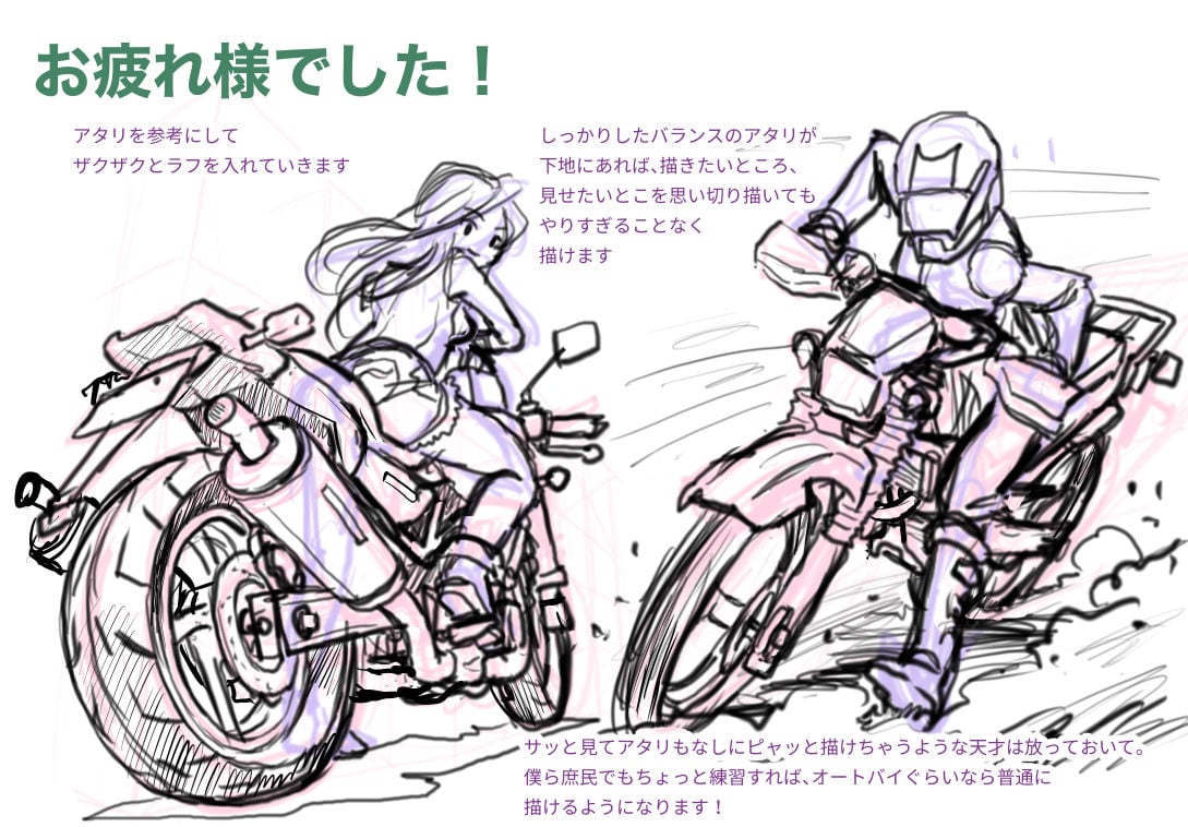 初心者も簡単!バイクのイラストの描き方 - オンラインイラスト教室アタムアカデミ。