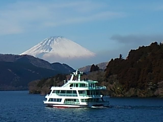 箱根芦ノ湖に海賊船と真っ白い富士山が美しい - 箱根金時荘。