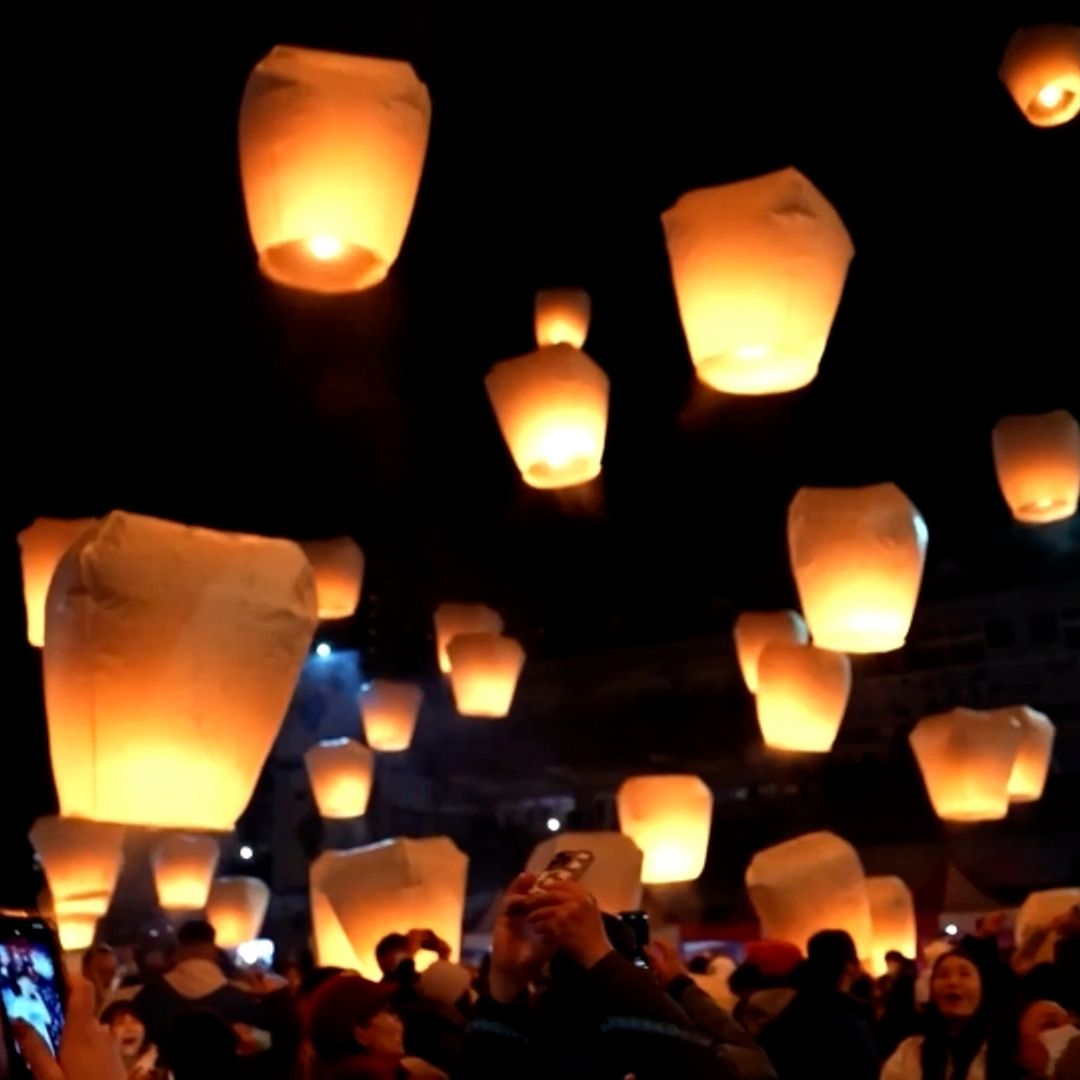 数百のランタンが一斉に夜空に、台湾で旧正月祝う光の祭り 字幕・9日Reuters。