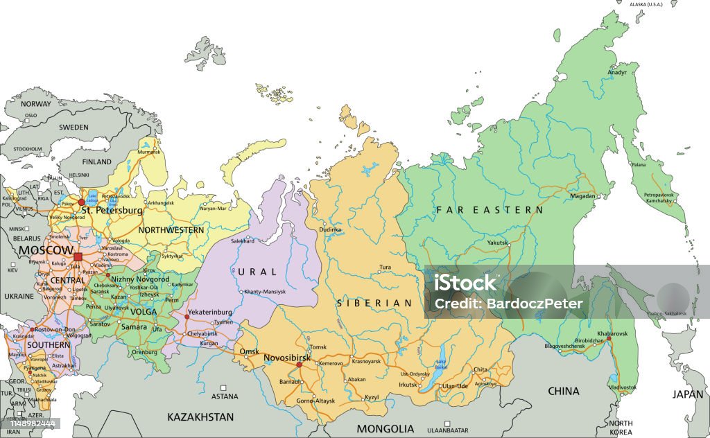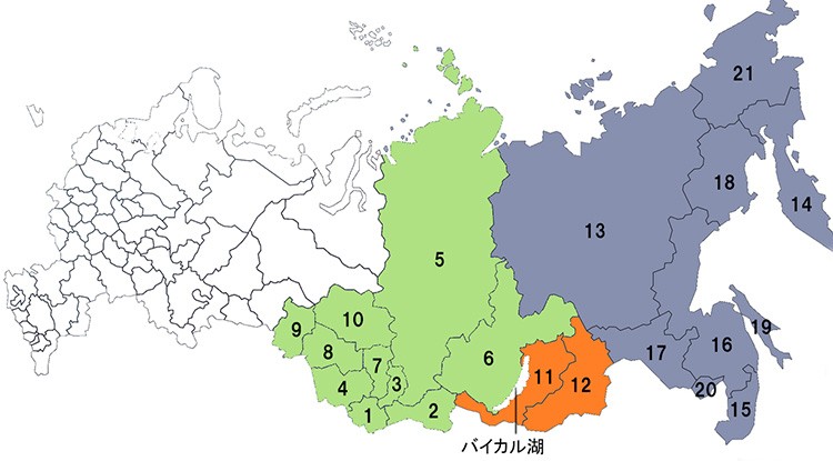 ロシアの地域区分図。