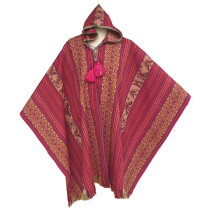 フード付きペルーポンチョ ペルー製ハンドメイドポンチョ 冬用ポンチョ ウールポンチョ。