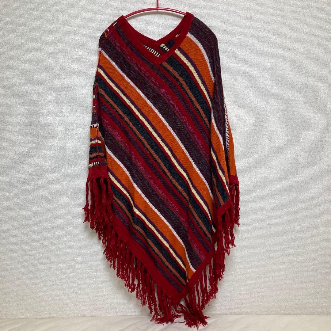 ペルー土産 フリンジポンチョ フリーサイズ -。