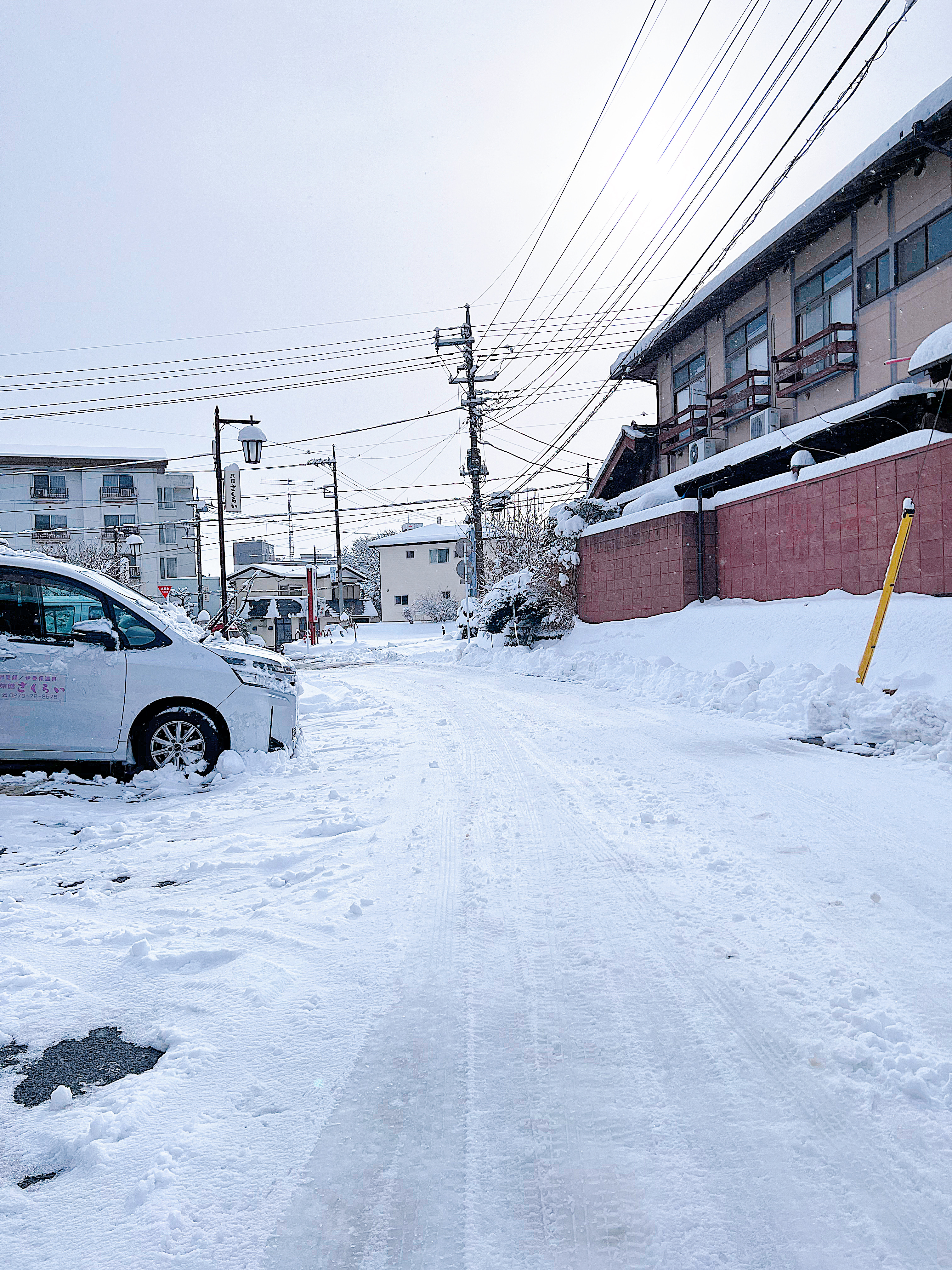 今日の伊香保は昨日から雪が降りました車の運転わスリップに注意です伊香保温泉 お宿 かつほ情報。