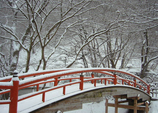 伊香保温泉 河鹿橋 雪景色。