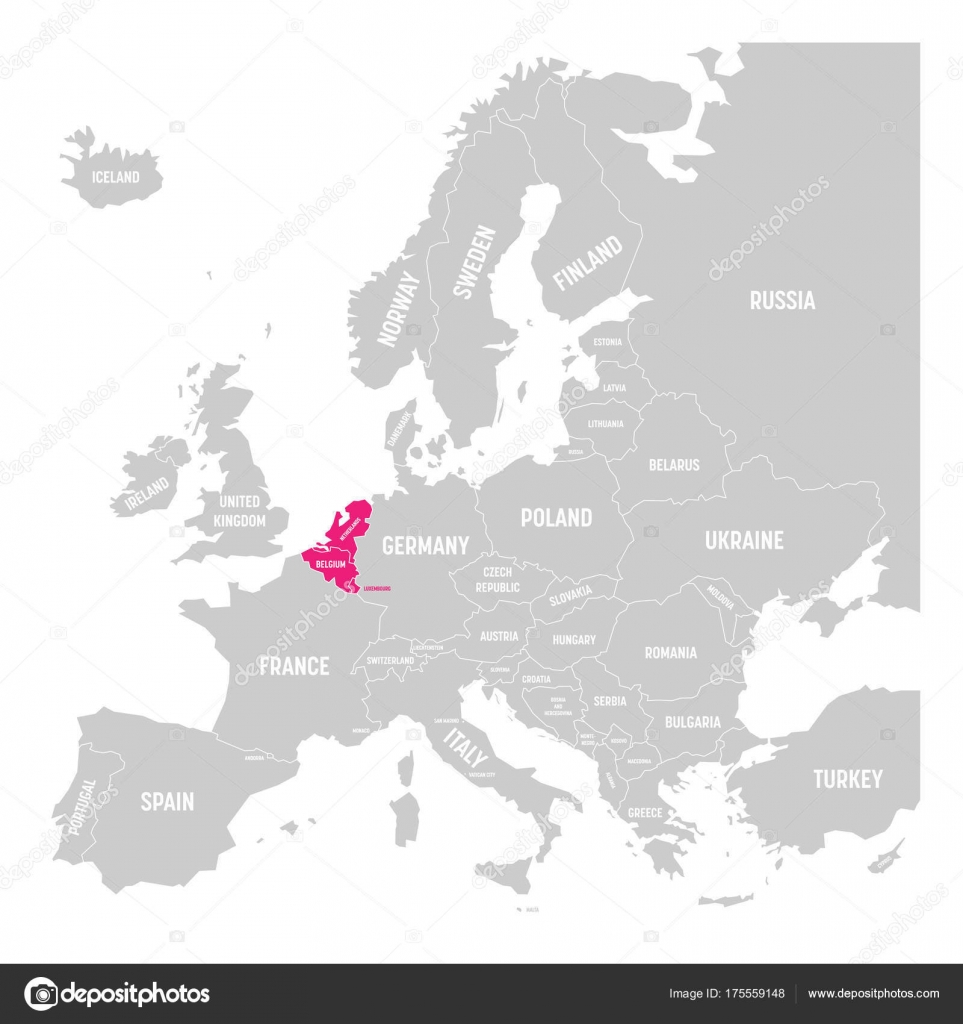ベネルクス三国は、ベルギー、オランダとルクセンブルクのピンクのヨーロッパの政治地図で強調表示状態します。ベクトル図 ストックベクター ©pyty175559148。