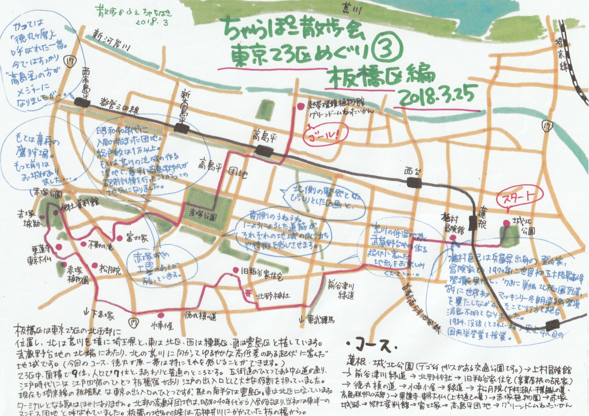 ちゃらぽこ散歩会のコース紹介 東京23区めぐり3 板橋区編。