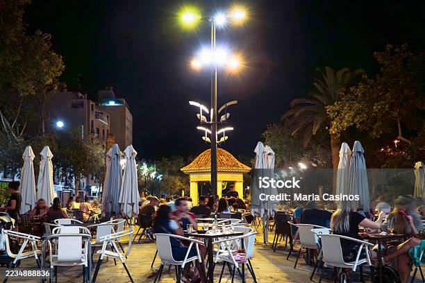 スペイン、バルセロナの中心部のランブラス通りの夜景の写真素材・画像素材 Image 44906984。