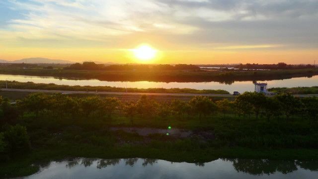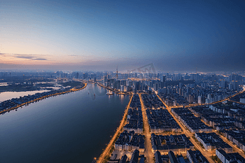 川面に映る朝焼けの絶景安徽省蕪湖市。