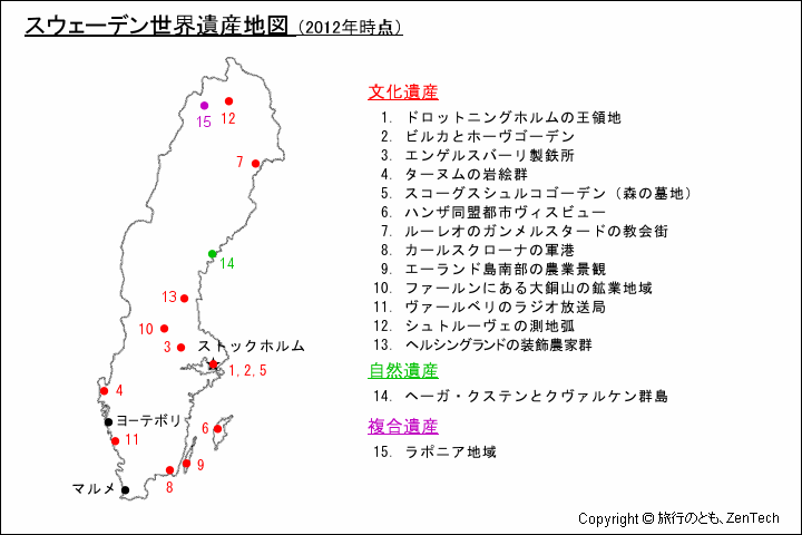 スウェーデン世界遺産地図 - 旅行のとも、ZenTech。