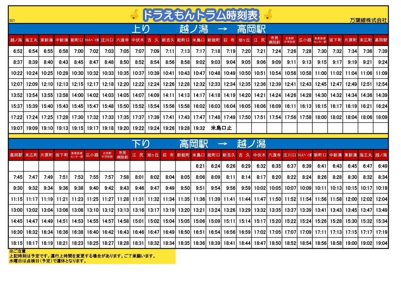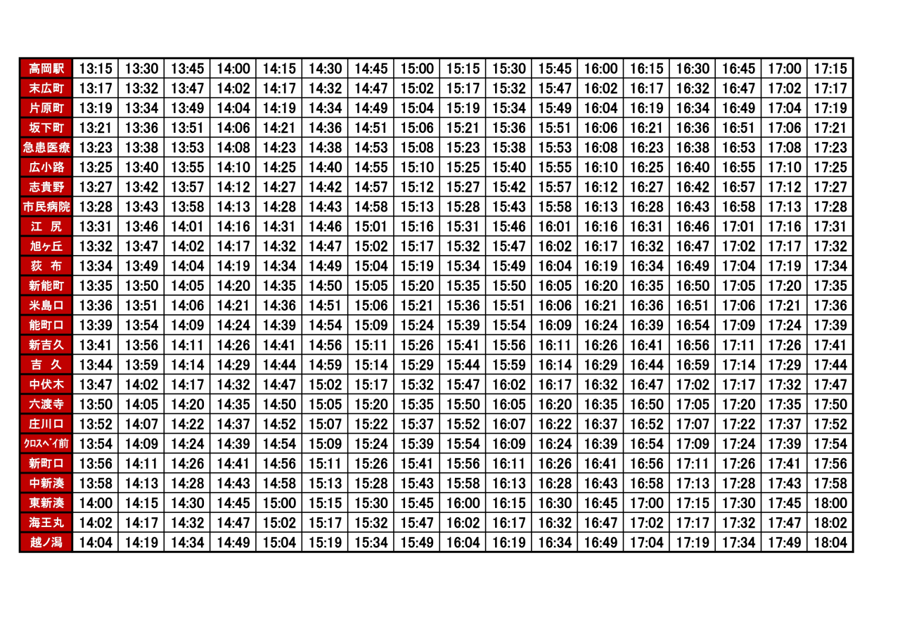 下り時刻表 高岡駅→越ノ潟万葉線株式会社。