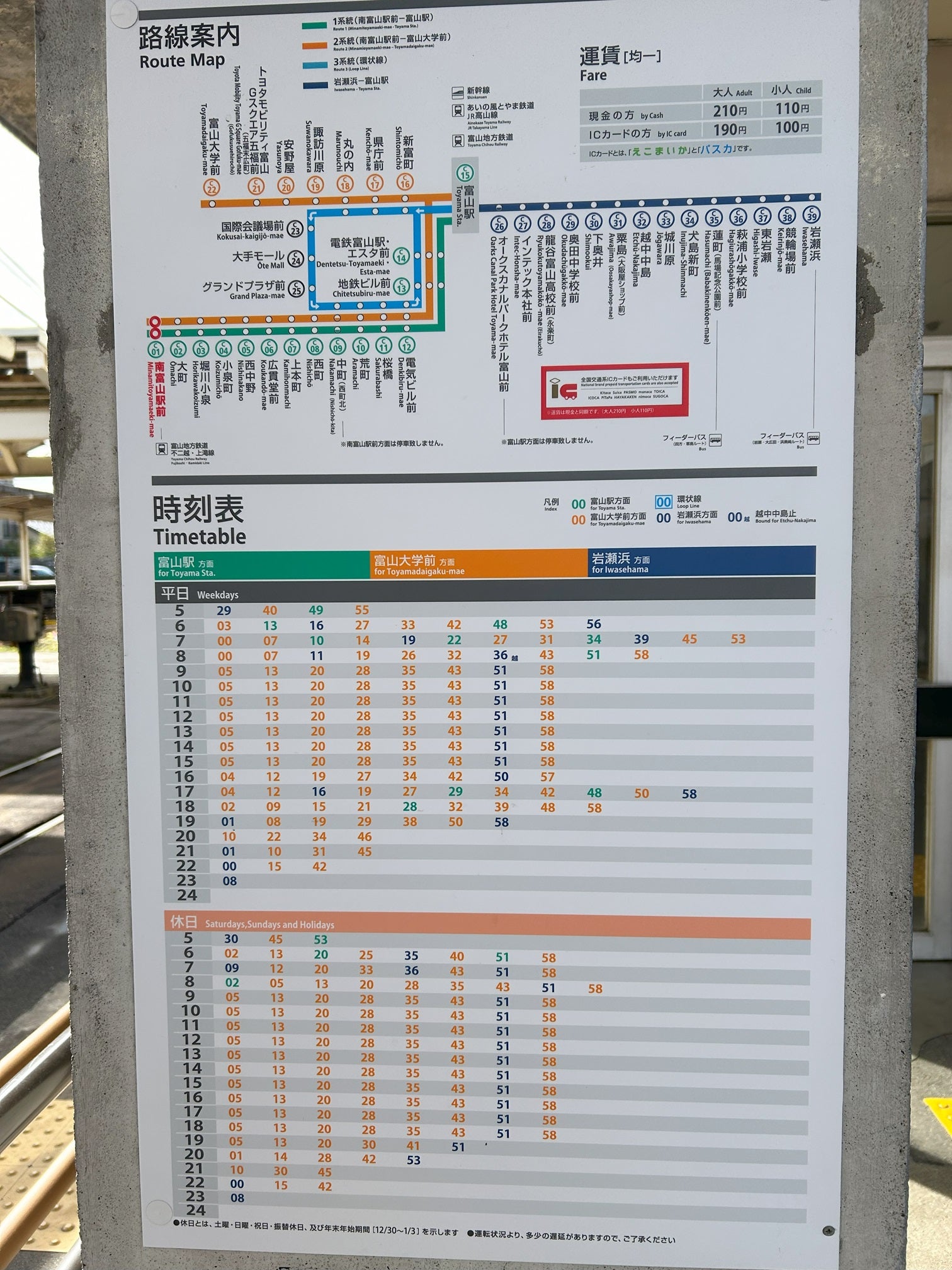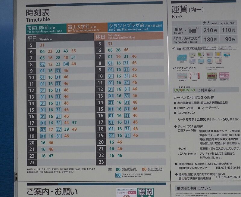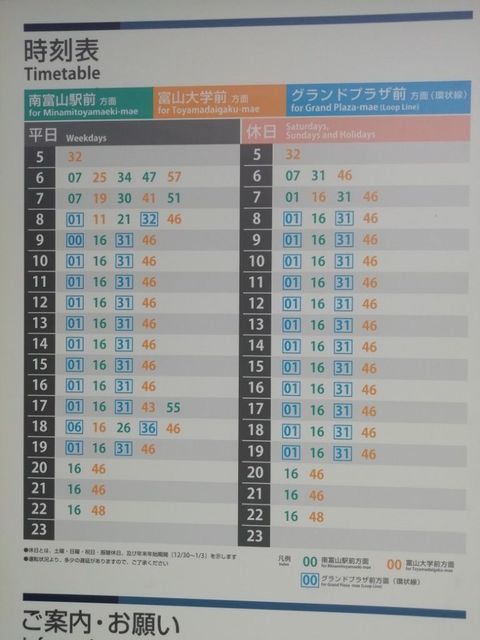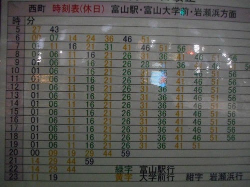 おきらく娯楽工房 on X: "富山市内電車の施設調査をしました。時刻表の記載が系統別の富山駅はシンプルな表記ですが、他の複数系統同時表示の場合は系統色別のカラーを用いていました!環状線だけ四角囲みは色合いの関係ですかね?https:t.co 6NWmxIumyV"X。