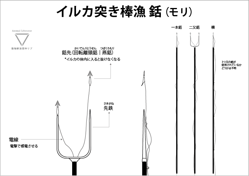 突き棒漁は イルカに銛を突き刺して 電流を流す - NPO法人。
