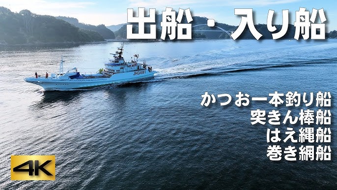 海の上の雲 気仙沼湾・突きん棒漁船出港 - YouTube。