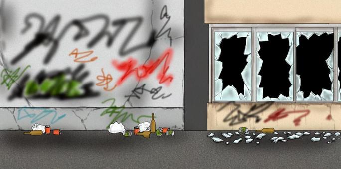 ゴミが散乱したスラム街 背景イラストイラスト - No:。