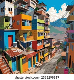 市内の貧しい地域の通り。スラム。シャンティの町のイラスト素材・ベクター Image 93077958。