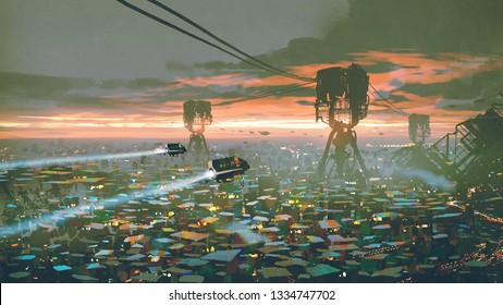 未来的な世界のスラム街の都市景観、デジタルアートスタイル、イラトスペイント」のイラスト素材 1334747702Shutterstock。