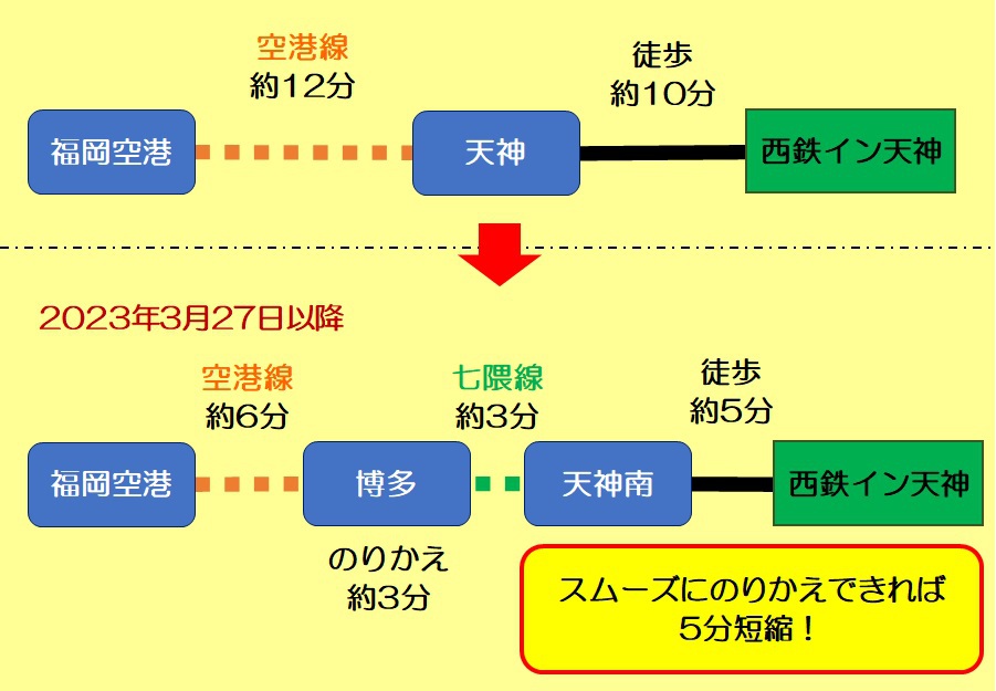 七隈線延伸 空港線との乗り継ぎは博多駅のみに 天神〜天神南の改札外乗換特例は廃止へ。