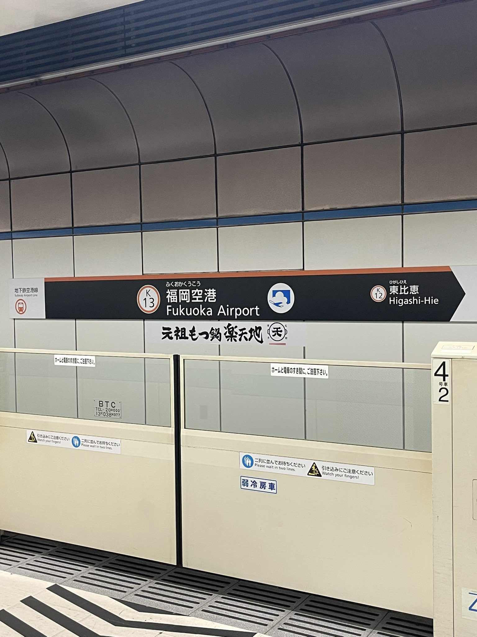 福岡市地下鉄空港線天神駅 ホームメイト。
