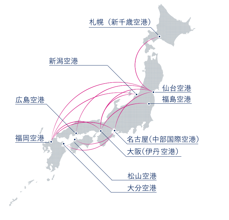 航空路図 日本中部 鹿児島-仙台航空路図 日本中部 鹿児島-仙台路線図。
