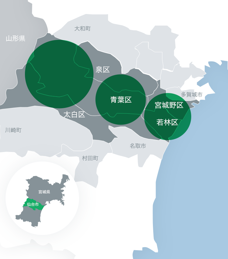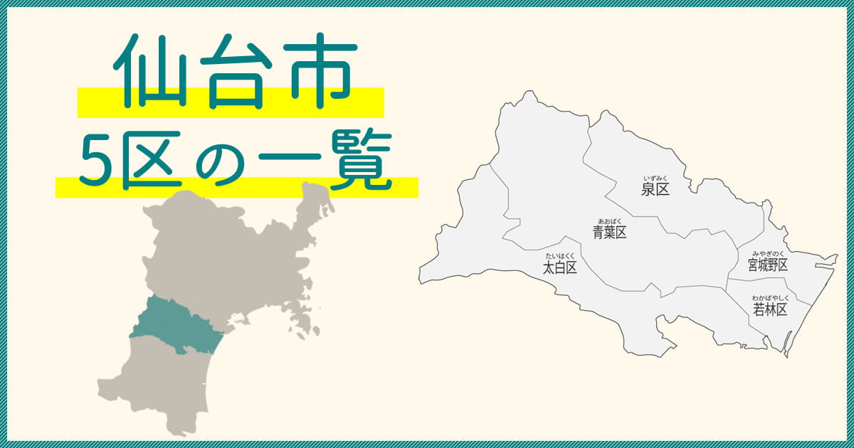 仙台市5区一覧 仙台市の区割り地図。