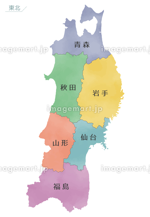 カラフルな水彩風の日本地図 東北地方のイラスト素材156078416 毎月1点無料。